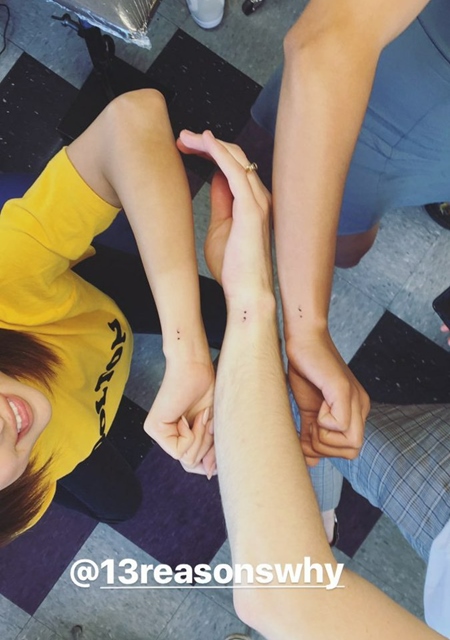 そんなドラマでプロデューサーを務めたセレーナは、今週、インスタグラムのストーリー機能を使って、ジェシカ役のアリーシャ・ボーとライアン役のトミー・ドーフマンと一緒におそろいのタトゥーを入れたことを報告。手首に「;(セミコロン)」のマークのタトゥーをゲットした。