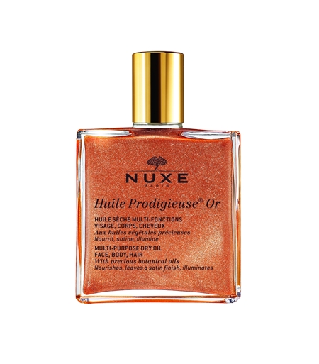 95.5%天然由来成分配合で、うるおいを補給しながら、なめらかな感触をもたらし、贅沢なゴールドパールの微粒子が肌や髪を繊細な輝きで彩る。