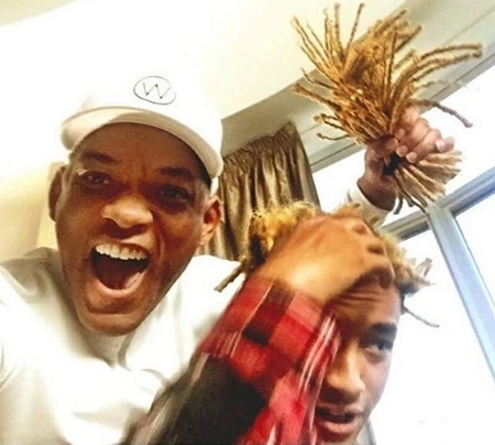 昨日、父のウィルがフェイスブックに息子ジェイデンの長髪を根元からばっさり切る写真をアップ。