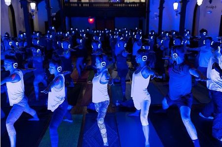 見た目が驚きなわりには、意外と理にかなったサウンドオフ・ヨガ。日本でもハイブリッド・エクササイズの上陸は増えているので、こんな光景を目にする日は近いかも。