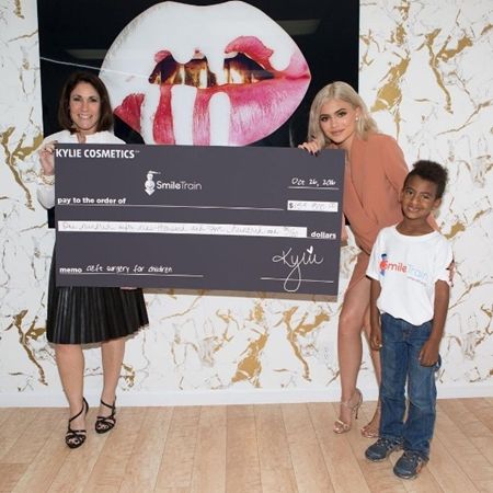 この日のチャリティイベントは、唇顎口蓋裂(しんがくこうがいれつ)の子供たちをサポートする団体スマイル・トレインのために開かれたもので、実はカイリーは、この団体への寄付を目的として、自身がプロデュースするコスメブランドKylie Cosmetics(カイリーコスメティックス)から「スマイル」という名前のチャリティリップキットをリリースしている。