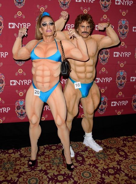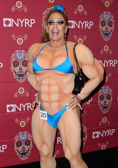 米時間の金曜日(10月28日)に女優兼シンガーのベット・ミドラーが催したハロウィンパーティに出席したマークが挑戦したのは、女性ボディビルダーの仮装。