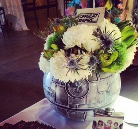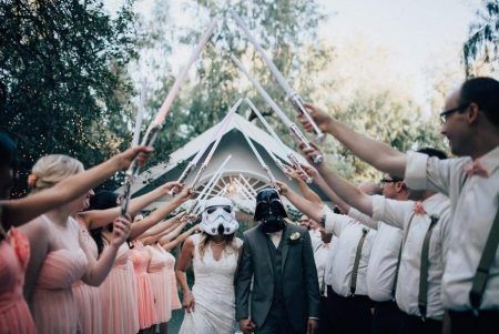 海外のオタク男子が圧倒的に憧れるのが映画『スター・ウォーズ』をテーマにしたウェディング。ダース・ベイダ―やストーム・トルーパーのマスク、ライトセイバーなどの小道具が比較的手に入れやすいのも人気のヒミツ。