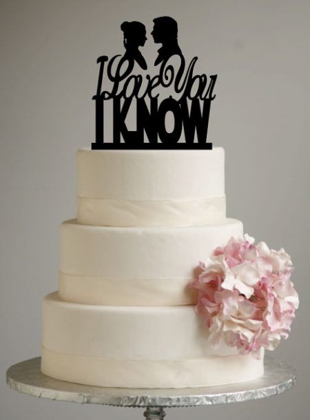 ハンソロとレイア姫のロマンチックな名台詞のケーキトッパ―がおしゃれ。