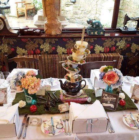 マッドハッタ―のティーパーティーをイメージしたゲスト用のテーブル。