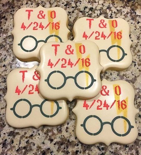 挙式の日付が入ったハリーの眼鏡と稲妻マークのクッキー。