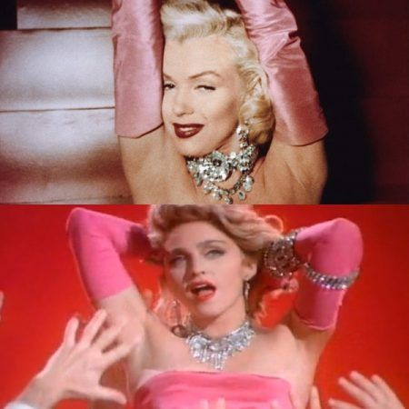 マドンナの代表曲の一つでもある「マテリアル・ガール」がオマージュを捧げているのは、マリリン・モンロー主演のミュージカル映画『紳士は金髪がお好き』の一場面。多くの男性に求愛されている様子が、歌詞とぴったりマッチしている1本。