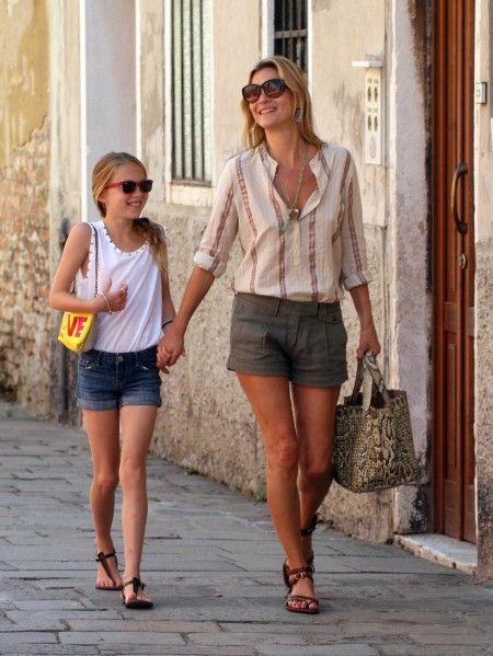 スーパーモデルのケイト・モスと娘ライラ・グレースちゃんは、ショートパンツ、フラットサンダルでラフなバカンススタイル。アイテム違いでスタイリングをさりげなくおソロいに。