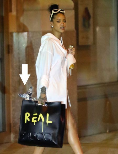 さらに、先日NYからドレイクの次のツアー公演が行われるマイアミに移動した際にも、リアーナのバッグからチラリと覗いていた。