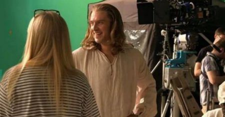 さらに、主人公のベルをかけて野獣と争う悪役のガストンを演じるルーク・エヴァンス(後姿)と、その手下のル・フウを演じるジョシュ・ギャッドが村の小屋で何やら暴れているシーンの場面写真も公開された。