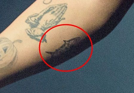 ドレイクの腕の内側に入れられたサメのタトゥー。