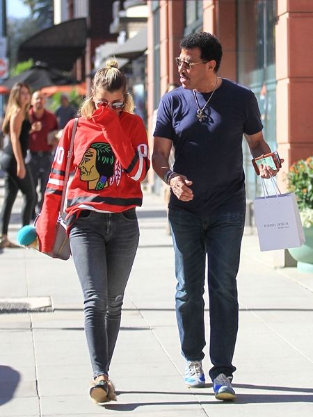 父親のライオネル・リッチーと買い物を行く時も、ボーイッシュなスタイルに取り入れて。