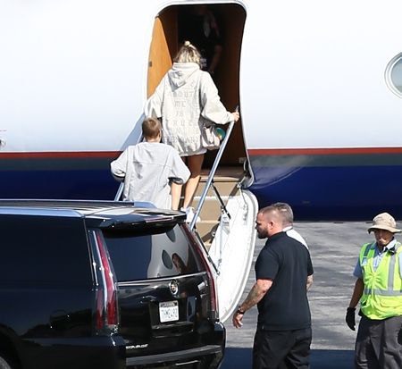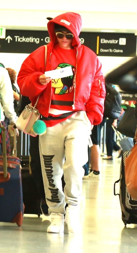 空港で目撃された時も、Fendiのバッグを肩からかけて。ちなみにスウェットパンツは、ジャスティンのツアーグッズ。