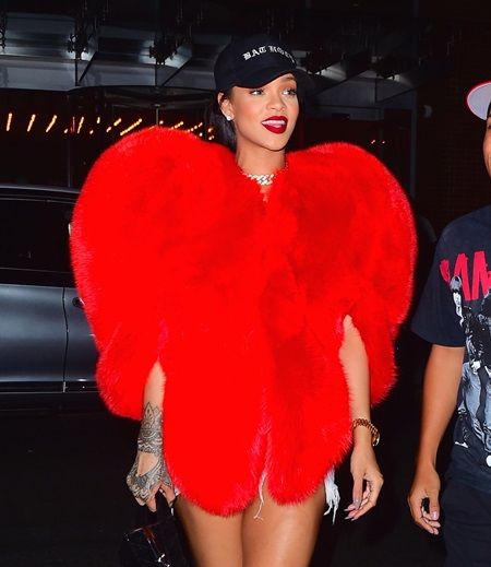 日本時間の昨日(9月5日)にNYで外出したリアーナが着ていたのは、約155万円もするSaint Laurentのフェイクファー・ケープ。