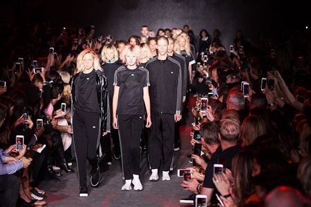 そして、映像が終わるや否やAdidas(アディダス)とAlexander Wangのトラックスーツに身を包んだモデルたちが2列に並んでランウェイをウォーキング。Adidas×Alexander Wangのコラボの発表だった。