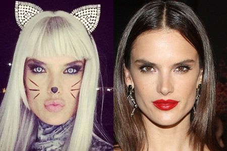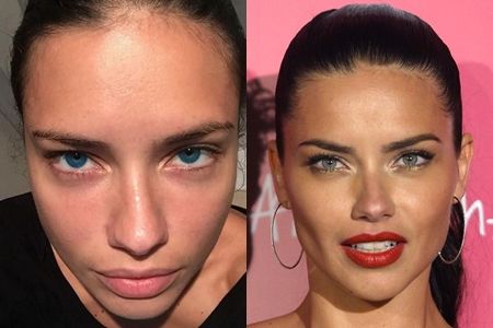 ハロウィンのメイク前のすっぴん顔に鮮やかなブルーのカラコンを入れた写真を公開したベテラン・ヴィクシー・モデルのアドリアナ。普段のグレーに近いブルーアイとだいぶ違う!