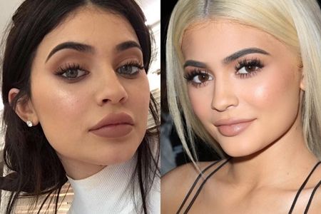 ブラックのフチがついたライトブルーのコンタクトでグレーアイに変身したカイリー。ヌーディーなメイクがよりエッジーな印象に。