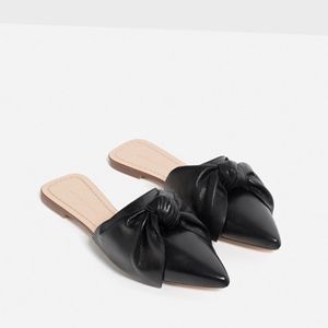 ZARA リボン付きレザーフラットサンダル 10,990円(税込)