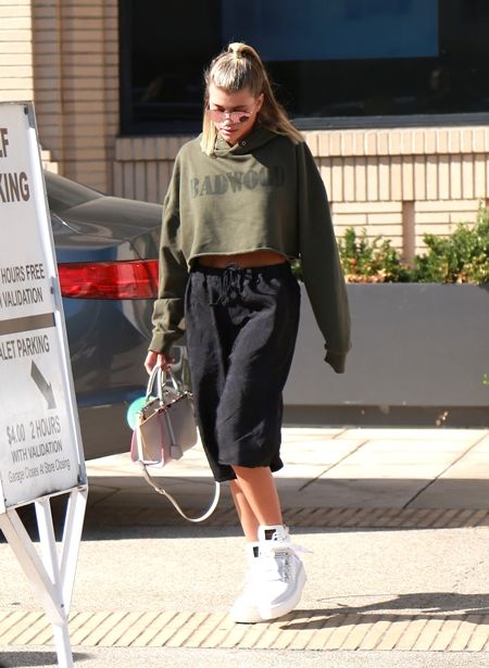 ビバリーヒルズのバーニーズNYに買い物へ出かけたソフィアは、Badwoodのクロップトフーディを黒のキュロットパンツにセットしてボーイズライクに。バッグはFendi。