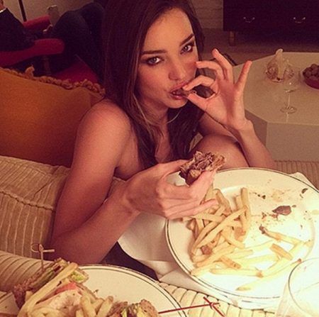 世界中にスーパーフードの素晴らしさやヘルシーな食生活を送ることの大切さを伝えたミランダも、チートデイにはワインのお供に大好きなハンバーガーやポテトを手づかみで頬張ることも。意外!