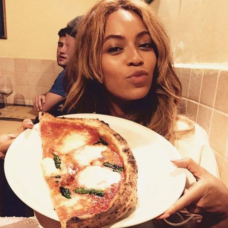 女王ビヨンセも大好きなピザの誘惑には勝てない! イタリアン・レストランで巨大なモッツァレラチーズが乗った本格的なマルゲリータピザに舌鼓。