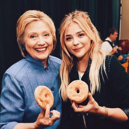 映画『キックアス』の女優クロエはヒラリー・クリントン大統領候補との交流イベントで、ヒラリー氏と一緒にドーナツを堪能。ヒラリー氏も嬉しそう。
