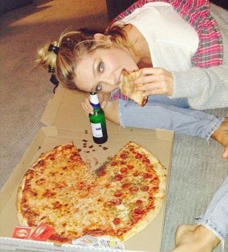 エンジェルとして抜群のプロポーションを維持するため普段はかなりハードなトレーニングをしているキャンディスは、妊娠発覚前の友達とのハングアウトで、床に座ってぺぺロ二・ピザとビールを楽しんでいた。