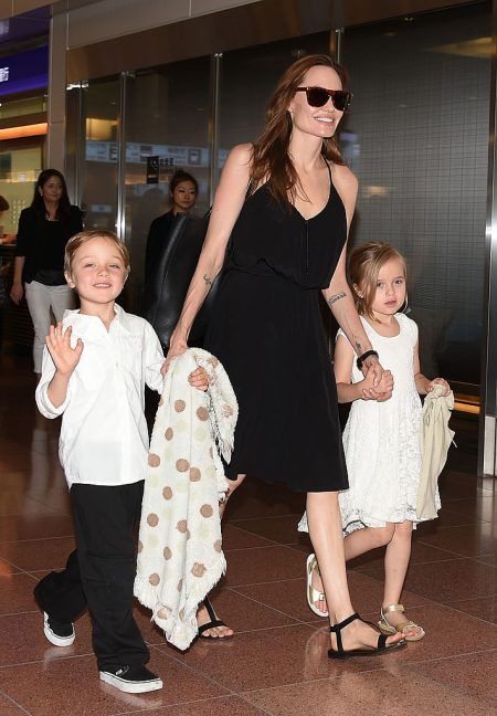 2014年夏の来日時には何人かの子供たちを連れて来日したアンジェリーナ。双子のノックス(左)とヴィヴィアン(右)と手をつないで羽田空港に降りたった。