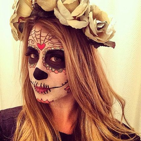 リアリティドラマ『ヒルズ』のローは、メキシコの死者の日に施されるガイコツメイクにトライ。難しそうに見えるけれど、絵を描くように模様を描けば、意外と出来そう?