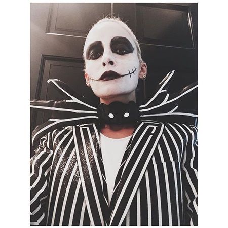 ファッショニスタのニコールは映画『ナイトメアー・ビフォア・クリスマス』の主人公ジャックになりきり顔全体をガイコツフェイスにペイント。これもクールでシャープな印象。