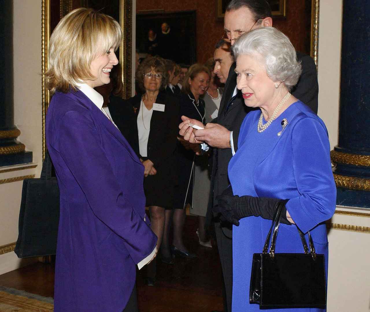 2004年にバッキンガム宮殿で催されたイベントでエリザベス女王と対面するツイッギー。