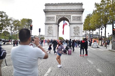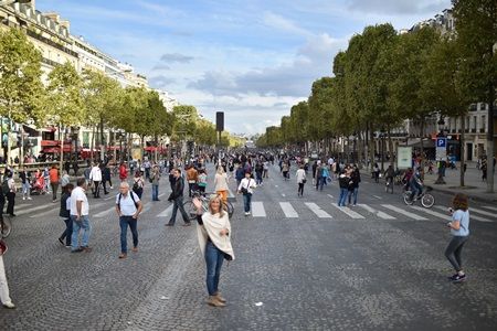 シャンゼリゼ大通りをはじめ市内の各エリアは、パリっ子だけでなく観光客など多くの歩行者であふれ、それぞれがいつもとは少し違う風景を楽しんでいた。