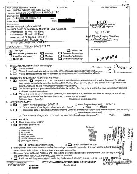 手数料さえ支払えば、離婚の申請書をはじめ多くの裁判書類が手に入る。こちらはアンジェリーナ・ジョリーが9月に申請した離婚書類。