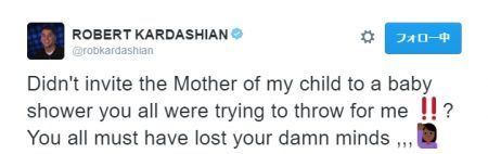 ところが、そのベビーシャワーに婚約者のブラックが招待されていないことを知り、姉妹がそろって彼女に対して意地悪をしていると勘違いしたロバートの怒りは爆発。カイリーの電話番号を晒すという暴挙に出たと言われている。