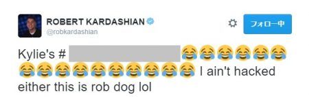現地時間の昨日夕方、ロバートは突然「カイリーの電話番号だよ」と彼女の電話番号をツイート。泣き笑いの絵文字が大量につけられたその投稿には「ハッキングされたわけじゃないぜ。俺はロバート(本人)だ」とのコメントが添えられていた。