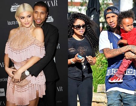 左:2014年から交際をスタートしたカイリー&タイガ。 右:ブラックとタイガの間に生まれた長男キング・カイロ君は現在3歳。
