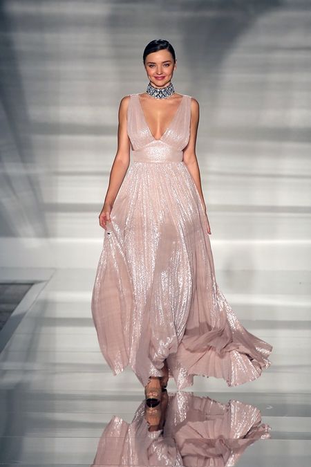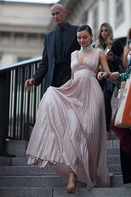 この日は会場入りした後、ランウェイを歩くために衣装チェンジをしたミランダ。先ほどのドレスとは打って変わり、煌びやかなパステルカラーのドレスで登場し、堂々としたウォーキングを見せた。