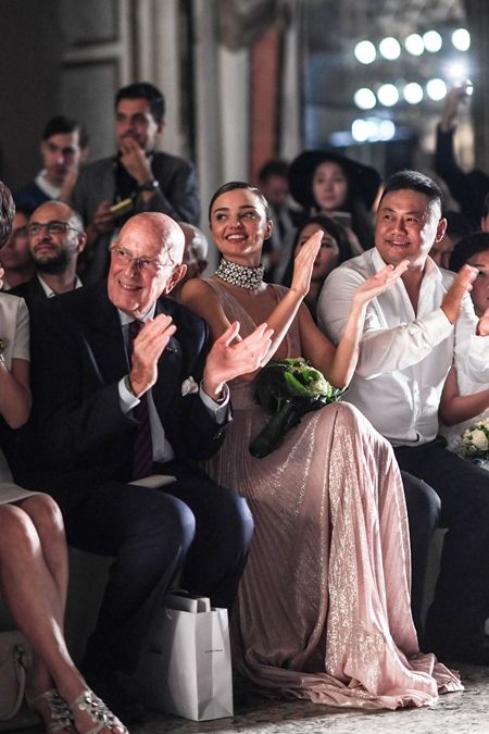 ミランダはランウェイを歩いた後、フロントロウに座りLa Koradiorのコレクションを鑑賞。