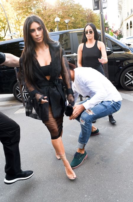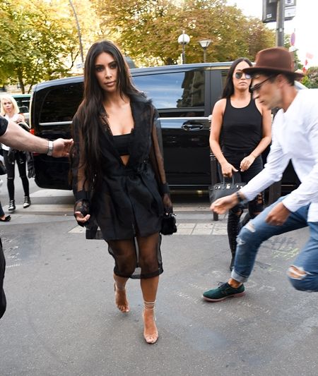 ファッションウィークでパリに滞在しているキムが、ラヴェニューというレストランへ入るときに、ファンやパパラッチなどの間から突然男が現れ、キムに接近。男はキムのお尻にキスをしようとしたが、あえなく彼女のボディガードに取り押さえられた。