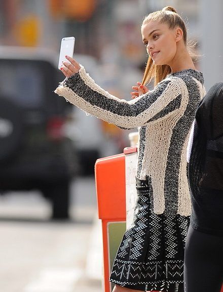 レオナルド・ディカプリオと交際中のモデル、ニーナ・アグダルも街中でセルフィー。