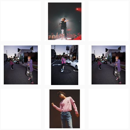 ウィル・スミスの息子で俳優のジェイデン・スミスは、真っ白な画像を間に挟んで投稿するのが特徴。こうすることによって1つ1つの画像が目立つうえ、なんだかオシャレな写真集を読んでいるような気分にもなれる。