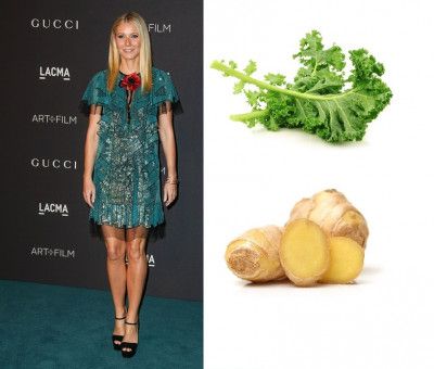 カフェインレスなのに、飲むだけでコーヒーのようにシャキッと元気になれるという、映画『アイアンマン』のグウィネス・パルトロウの特製グリーンジュース。抗酸化作用や血糖値を下げる効果のあるケールを中心に、免疫力を高めたり内臓脂肪を減らしてくれるショウガなどを加え、体調を整えながら夏ヤセを実現。