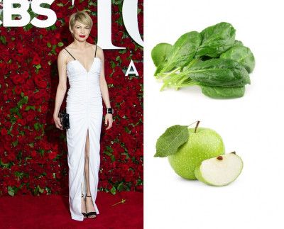 仕事が忙しい時期は食生活も不健康になりがちだと話す、映画『マリリン 7日間の恋』のミシェル・ウィリアムズ。そんな時でもグリーンジュースなら、手軽にしっかりと栄養がとれるので気に入っているそう。食物繊維をはじめ、鉄分や酵素が豊富な緑黄色野菜を取り入れて、疲れを癒している。