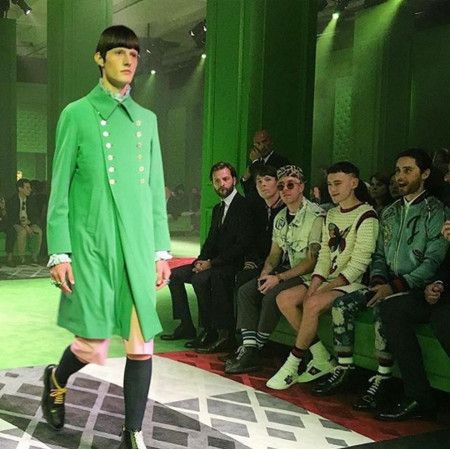 そして、今年6月に行われたGucciの2017年春夏コレクションのランウェイで、このコートを初めて目にしたときの、ジャレッドの表情がコチラ!