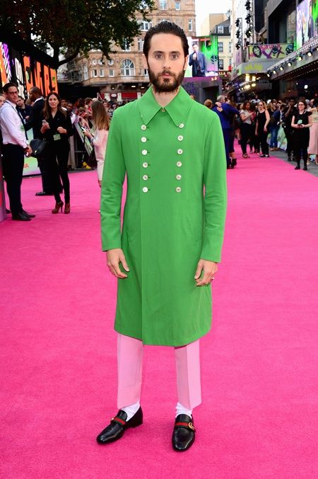 その「運命の1着」とは、彼がロンドンで開催されたヨーロッパ・プレミアで着用していたレトロなAラインが特徴のGucciのコート。鮮やかなフレッシュ・グリーンがジャレッドが演じたジョーカーの髪色と完全に一致した、まさに彼のために生まれたような逸品だ。