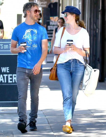 出産から4ヵ月後のアン。夫で俳優のアダム・シュルマンと、ジーンズ姿でお出かけ。