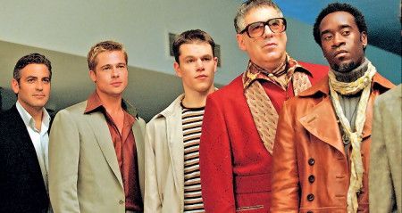 1960年公開の『オーシャンと十一人の仲間』のリメイクとして制作され、ジョージ・クルーニー、ブラッド・ピット、マット・デイモンら、人気俳優陣が豪華共演を果たしたことでも話題に。2005年には続編の『オーシャンズ12』、2007年にはシリーズ3作目の『オーシャンズ13』が公開され、いずれもヒットを記録した。