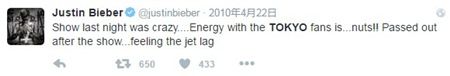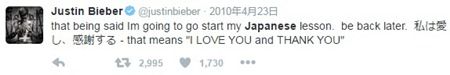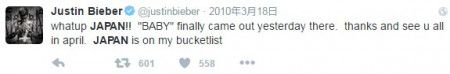 ジャスティンが初めて「Japan」という言葉をツイートしたのは、日本で「ベイビー」が発売された翌日の2010年3月18日。その時のリツイート数は601。最新の「Japan」ツイートは7万リツイート超えしているだけに、彼がどれだけ成長したかが分かる。