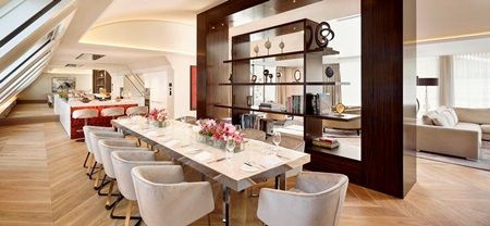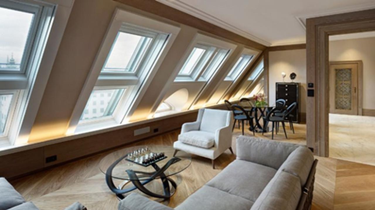 約820平米もあるメゾネットタイプの部屋のテラスからは歴史あるウィーンの街が一望でき、キッチン3つ、バスルーム4つ、リビング・ダイニングルーム、ファミリールーム、オフィス、ジムなど、ホテルの部屋とは思えない設備が揃っている。