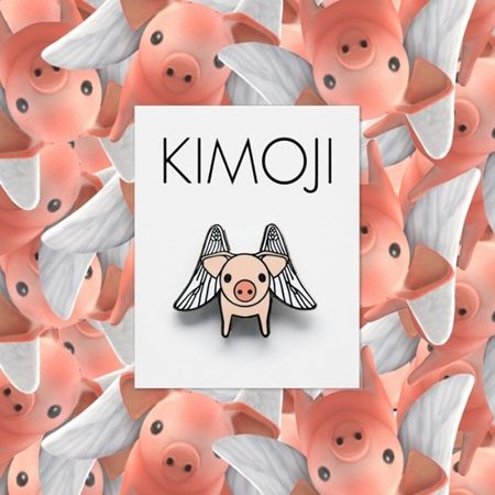 「このKimojiピン大好き! 全部のKimojiピンが大好きよ」と羽の生えたブタの画像と共にコメントをツイッターにアップ。